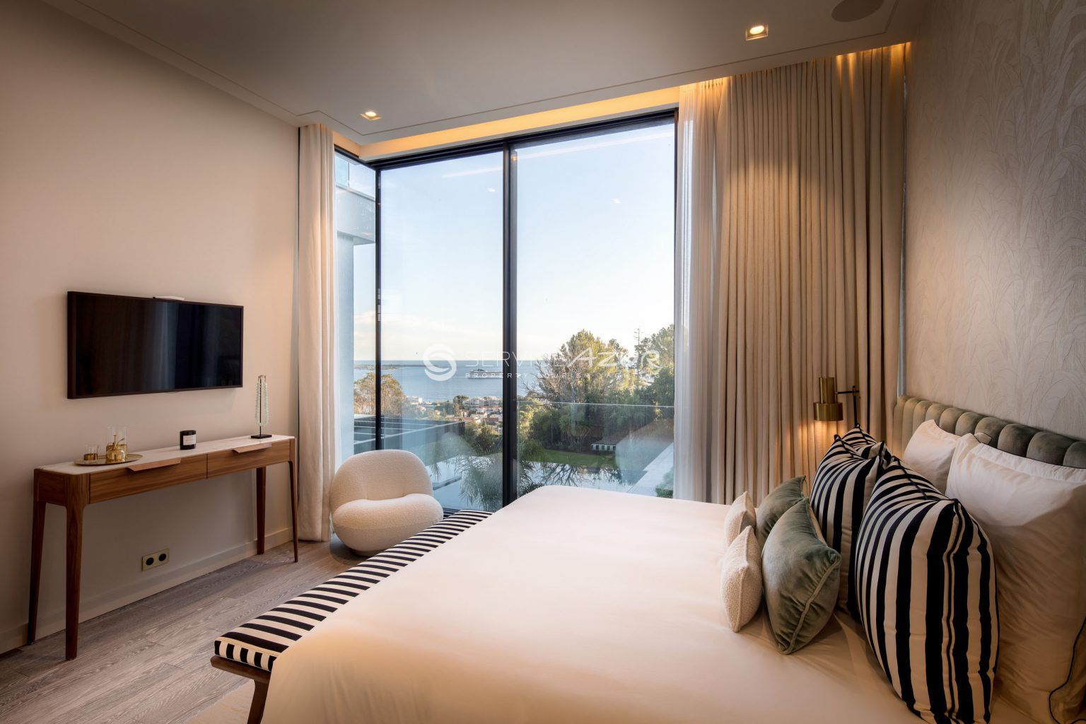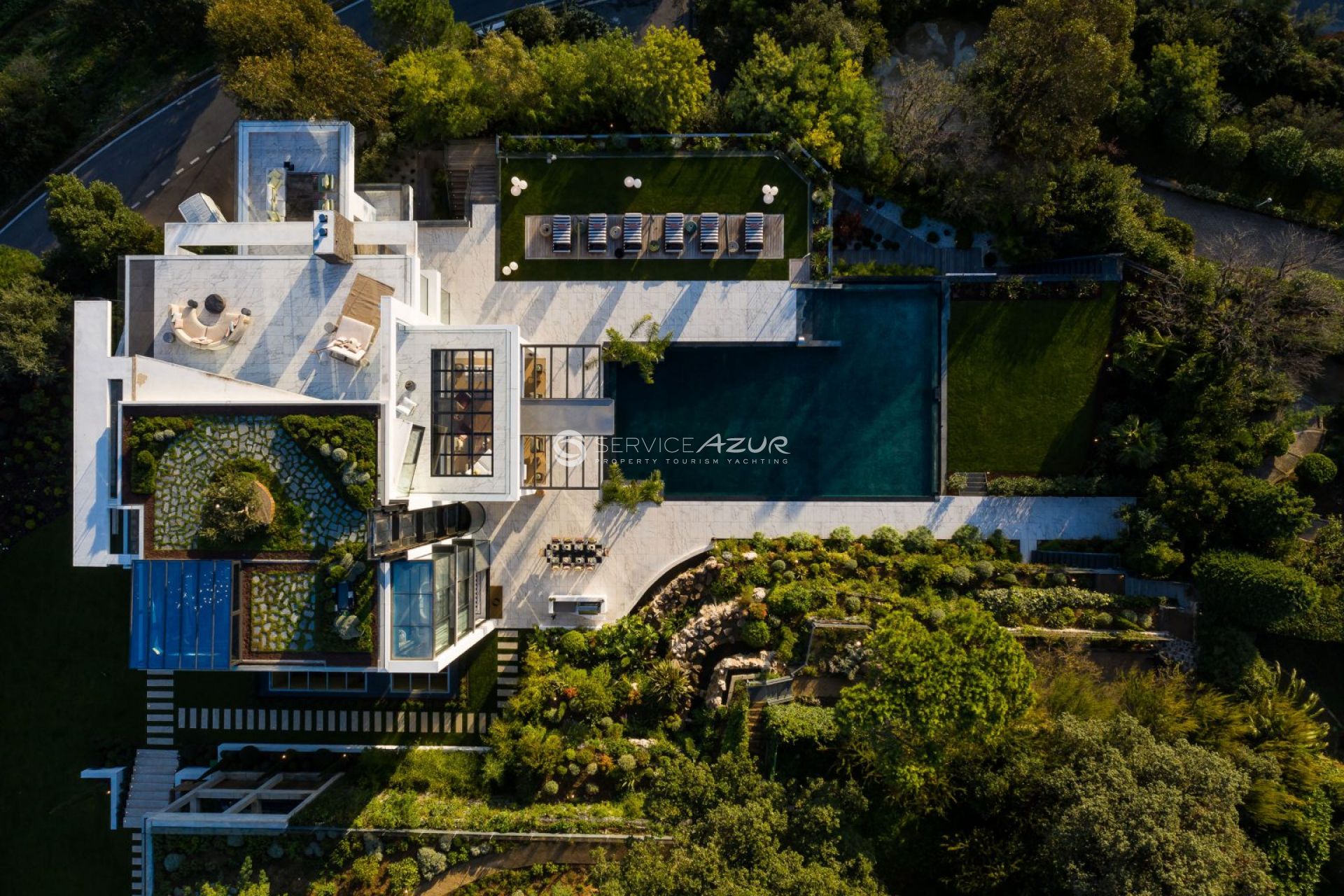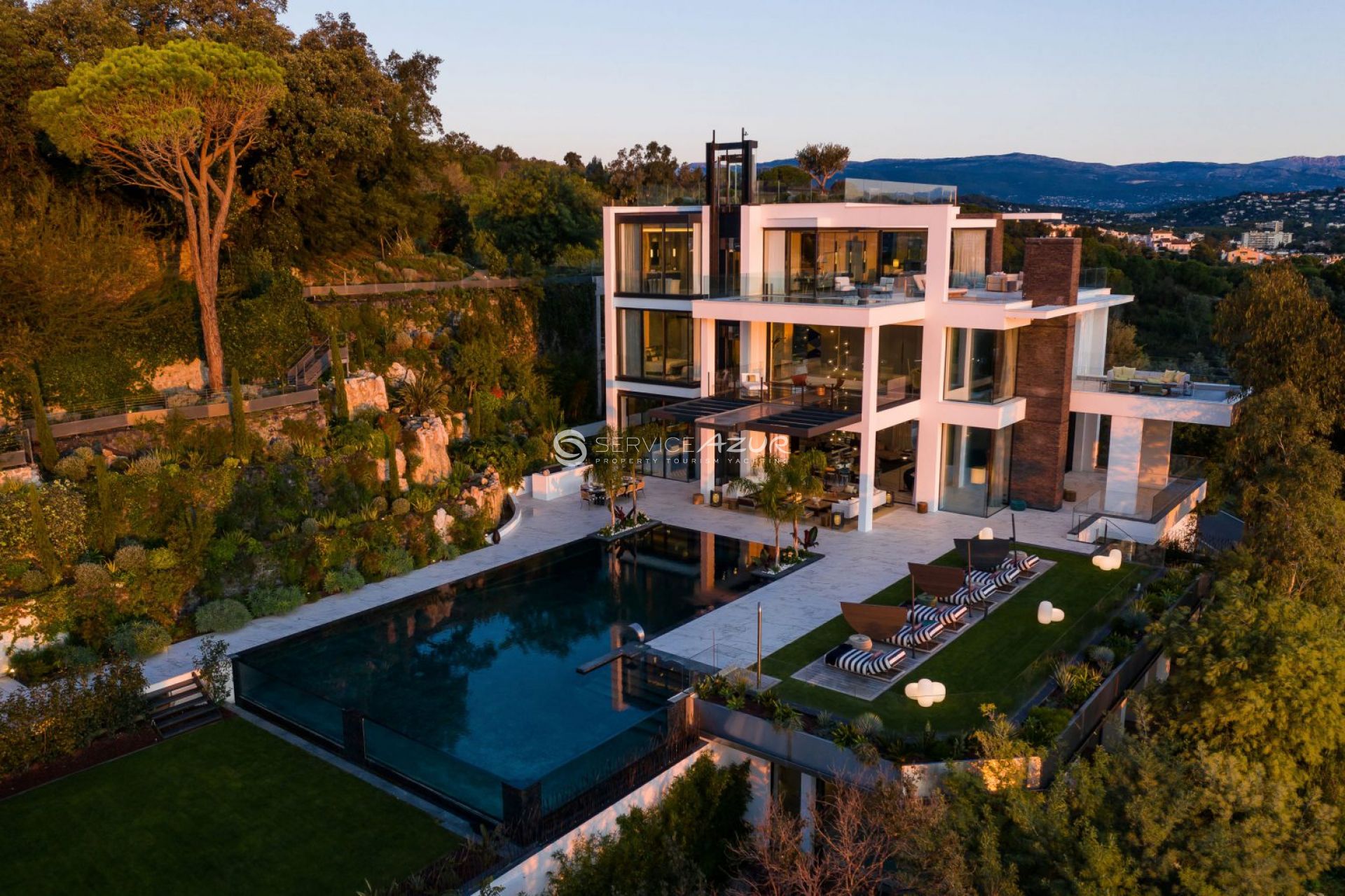 Эта вилла, расположенная в районе Круа-де-Гард в Каннах, идеально сочетает ультрасовременный дизайн, роскошь, комфорт и функциональность благодаря передовым технологиям. 1100 м² жилой площади распределены на пяти уровнях, соединенных стеклянным панорамным лифтом и лестницей. - Вилла обставлена мебелью ручной работы, включает 12 уютных свита, две гостиные с каминами, выходящими на просторные террасы с панорамными видами на море и окрестности, домашний кинотеатр, СПА, джакузи и тренажерный зал. - Для отдыха гостей предусмотрены подогреваемый бассейн, летняя кухня, площадка для игры в петанк, два водопада, разбит дополнительный сад на крыше. Четыре крытых парковочных места. - Расположенная в спокойном районе на возвышенностях Канн, эта вилла является настоящим оазисом роскоши на средиземноморском побережье Франции.